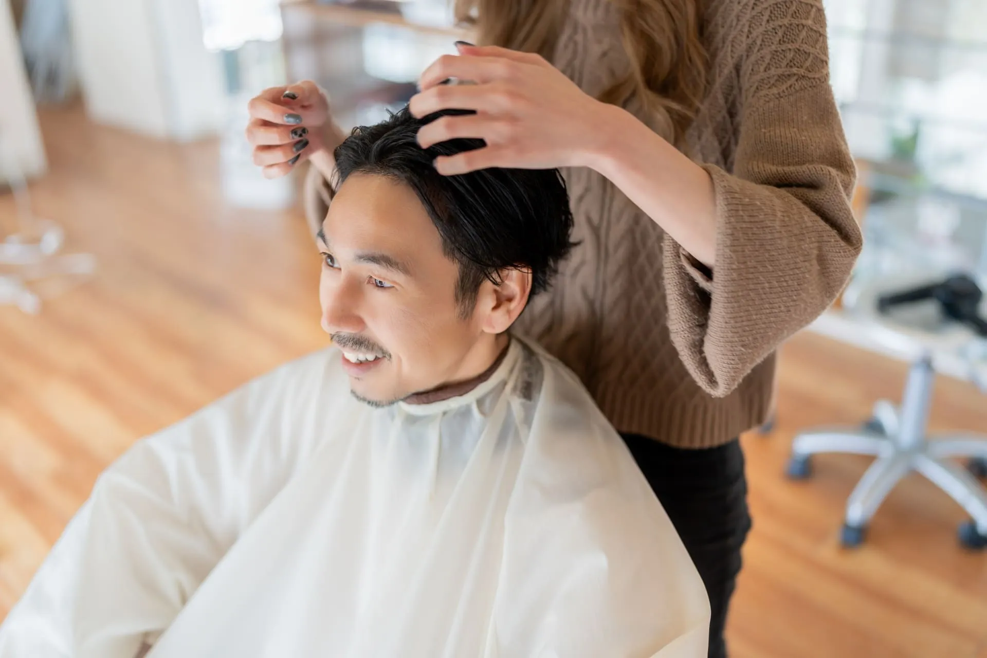 ワックスなしのメンズパーマは、毎朝のスタイリングに時間をかけたくない方に特に向いています。出勤前や外出前に鏡の前でセットする余裕がない場合でも、乾かすだけで髪型が整うため、日常のストレスを大きく減らすことができます。また、ワックスのベタつきや重さが苦手な方、髪や頭皮への負担をできるだけ抑えたい方にも適しています。さらに、自然な毛流れと清潔感を重視するスタイルは、ビジネスシーンでも好印象を与えやすく、職場で髪型に制限がある男性にとっても現実的な選択肢と言えるでしょう。